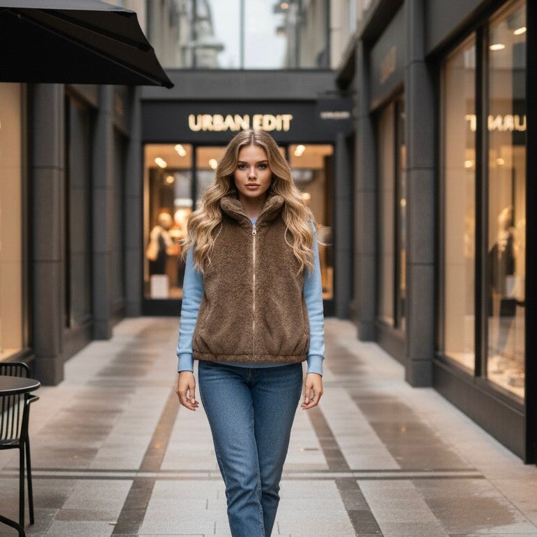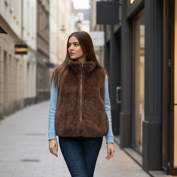 Ajoutez une touche de style et de confort à votre dressing avec notre gilet sans manches femme effet teddy, décliné en 5 coloris tendance.